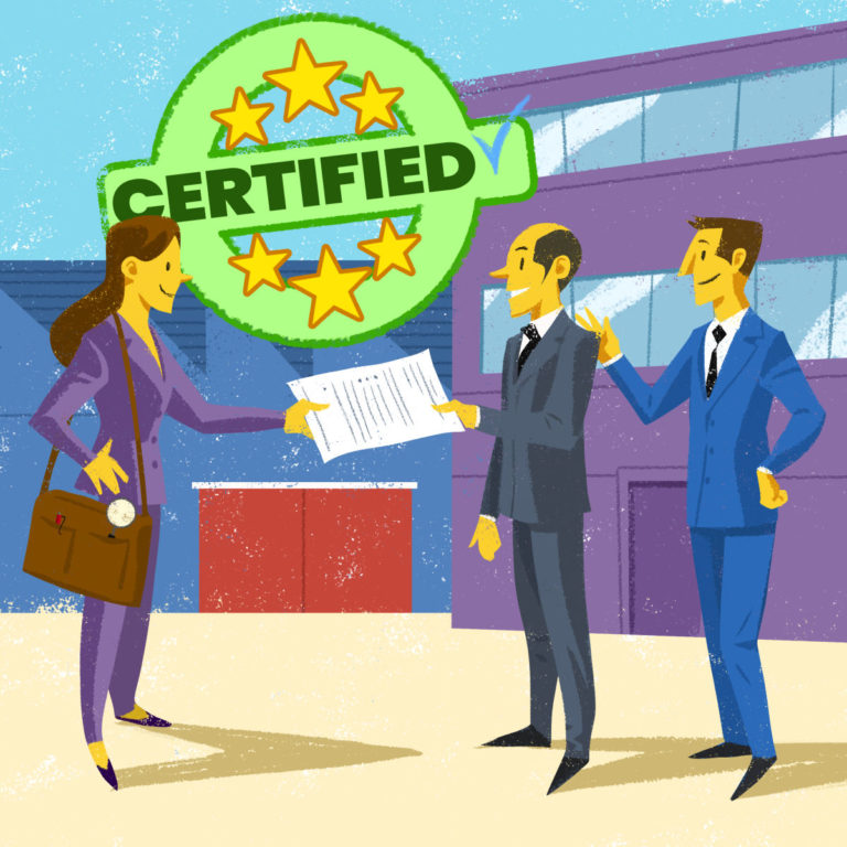 La certificazione del SGQ deve essere richiesta dall’organizzazione a un ente terzo, chiamato ente di certificazione. Tra le parti viene stipulato un vero e proprio contratto, dopodiché si procede con la pianificazione dell’attività ispettiva finalizzata alla valutazione della conformità del sistema alla norma tecnica applicata. La verifica ispettiva si divide sempre in due fasi, comunemente definite “stage 1” e “stage 2”. Nello “stage 1” l’ente di certificazione esegue una verifica di tipo documentale relativa all’intero SGQ; nello “stage 2”, invece, l’auditor o il team di audit verificano la corretta applicazione dello stesso, campionando registrazioni di processi e prodotti allo scopo di verificare la coerenza con quanto documentato nelle procedure. La durata della verifica – in termini di giorni – è definita in relazione alle dimensioni dell’azienda, al numero e al tipo di processi compresi nel campo di applicazione del certificato richiesto. La verifica di certificazione è condotta dagli auditor dell’ente di certificazione sulla base di un piano prestabilito e seguendo delle checklist dedicate, tramite le quali si verificano la rispondenza dei processi e dei documenti del SGQ ai requisiti normativi. Laddove sia rilevata una totale o parziale mancanza di conformità, l’ente emette un rilievo. I rilievi si classificano in non conformità maggiori e minori. In entrambi i casi, l’organizzazione deve definire un piano di azioni correttive utili a colmare le carenze individuate, da sottoporre all’approvazione dell’ente. Le non conformità maggiori sono ostative per il rilascio del certificato, pertanto l’azienda deve risolverle rapidamente, pena il blocco del processo certificativo. Le non conformità minori, invece, possono essere risolte in un arco temporale più ampio e, una volta che il piano di azioni correttive è stato approvato dall’ente, l’iter di certificazione può procedere. L’ente può rilasciare anche una terza tipologia di rilievo che, però, non costituisce una mancata rispondenza a un requisito, ma è più che altro un’opportunità di miglioramento. Questi ultimi rilievi sono infatti solitamente denominati “raccomandazioni”. L’azienda può scegliere se e come seguire i suggerimenti di miglioramento e, nel contesto dell’audit di sorveglianza pianificato per l’anno successivo, giustifica all’ente le proprie scelte.